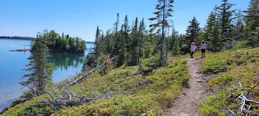 The hike down the Rock Harbor Trail was beautiful. It was very rocky and we were able to stop several times to go down to the waters of Lake Superior. It just was like no place I've ever been before and I loved every minute of it.